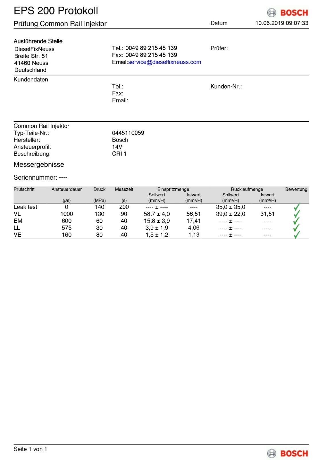 1 x AT-Injektor inkl. Kupferdichtring +  BOSCH Prüfbericht geliefert.