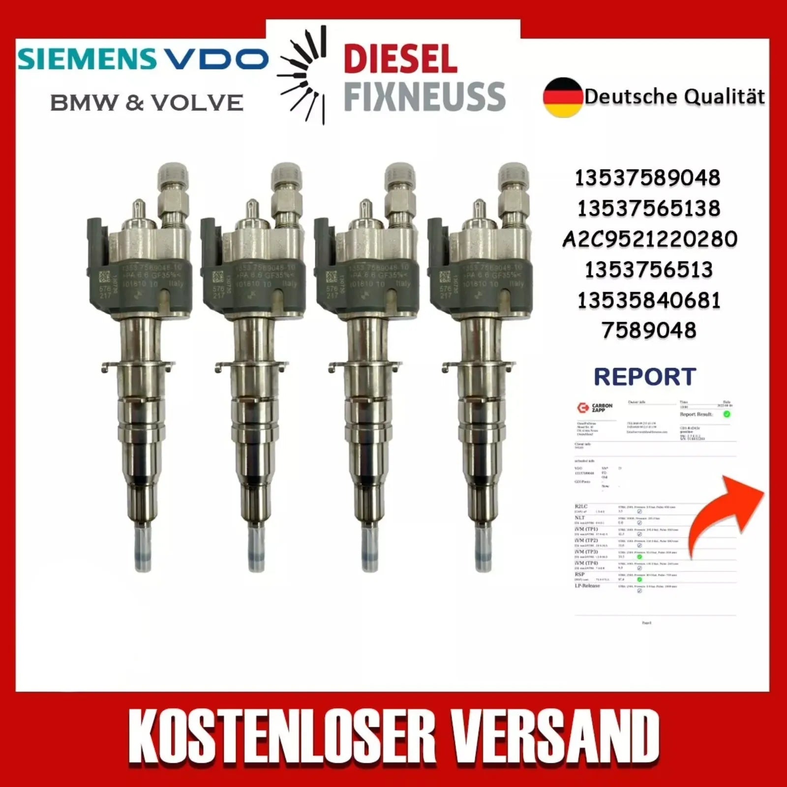 4x inyector AT incl. junta de estanqueidad de cobre + junta tórica + informe de prueba suministrado.